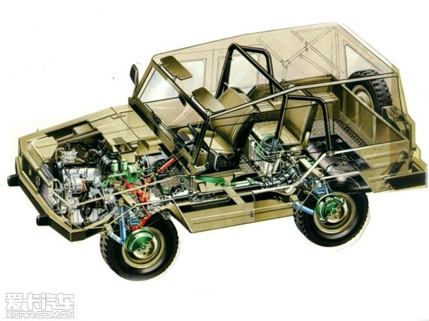 这套系统采用了中央锥齿轮差速器(同普通的轮间差速器一样),将动力平均传递给前后轴。在车辆转弯时,前轴的转速要比后轴快,因此通过差速器可以在实现转速差的同时保持动力输出。关于差速器的工作原理,欢迎点击以下视频。(这部视频由美国人拍摄于1937年)