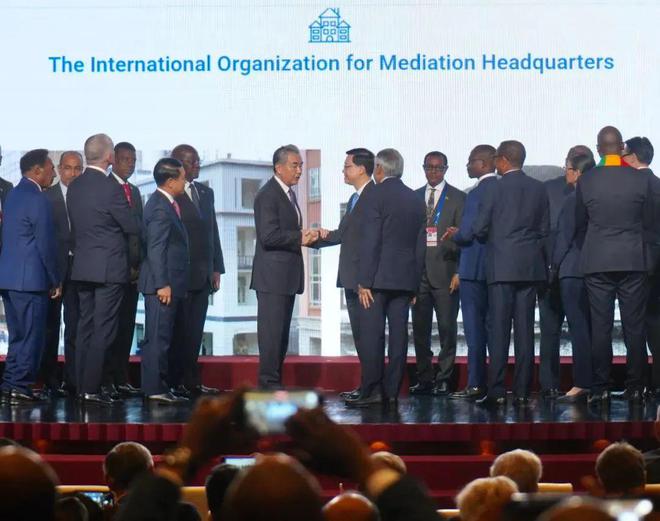 中国外交部长王毅与来自32个国家的代表共同签署《关于建立国际调解院的公约》,85个国家及20个国际组织的高级别代表见证仪式。