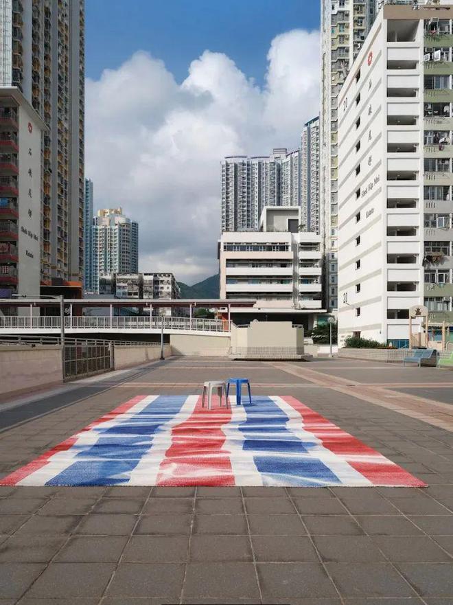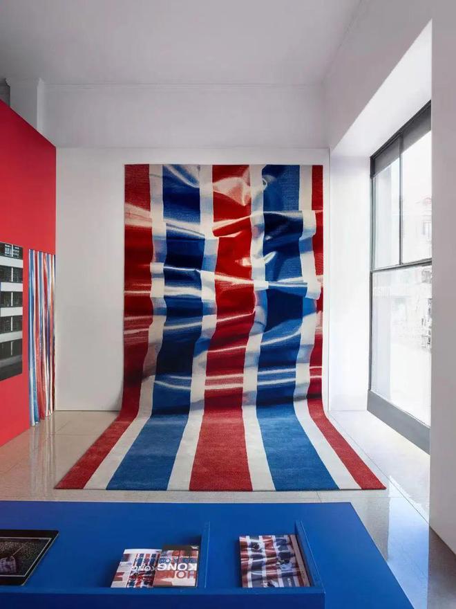 该系列以红白蓝帆布为灵感,将香港独有的城市记忆与变迁韧性,转化为3×6米的地毯作品《Hong Kong Walk On I》,在丝线交织中演绎视觉诗篇。